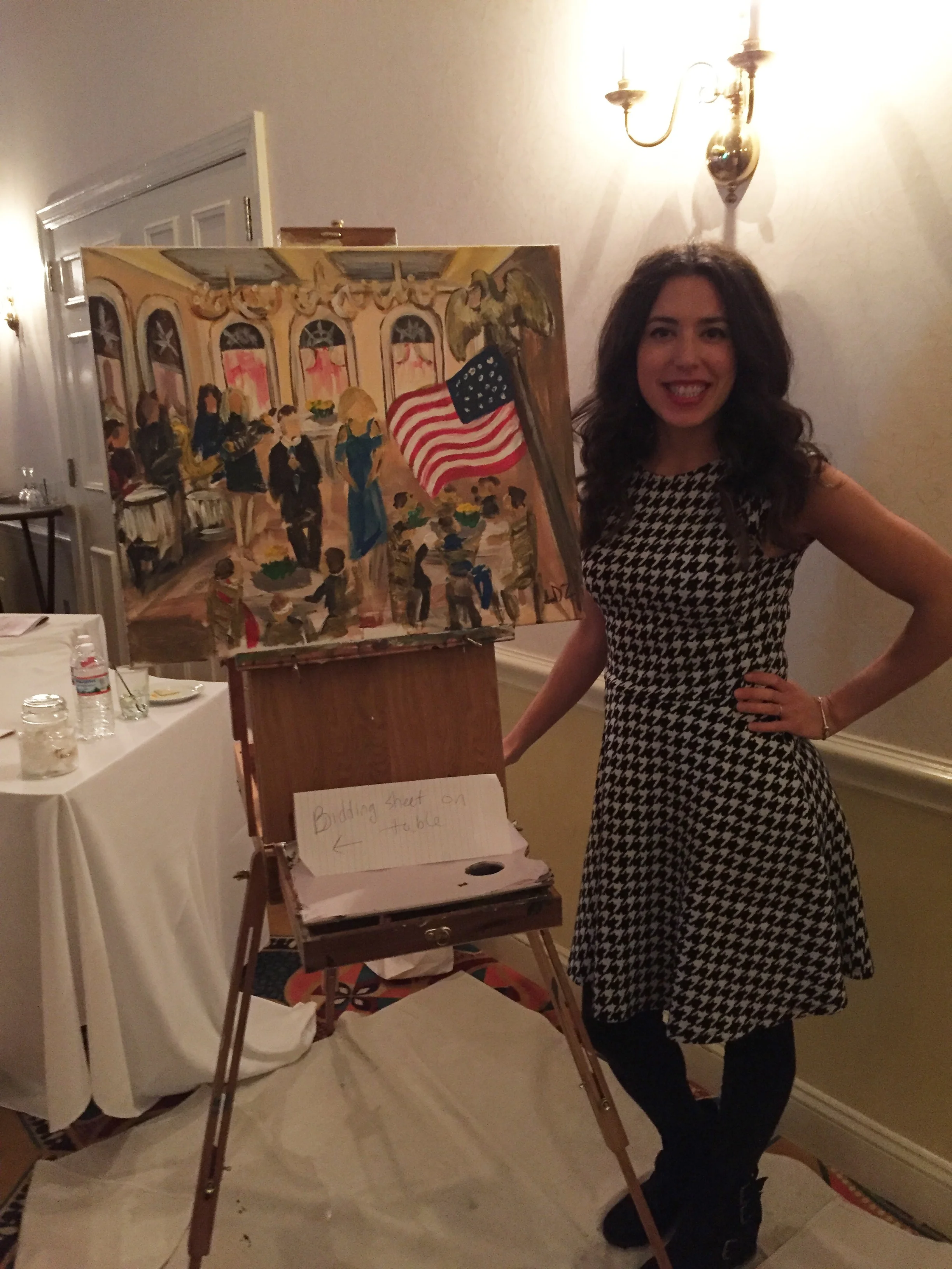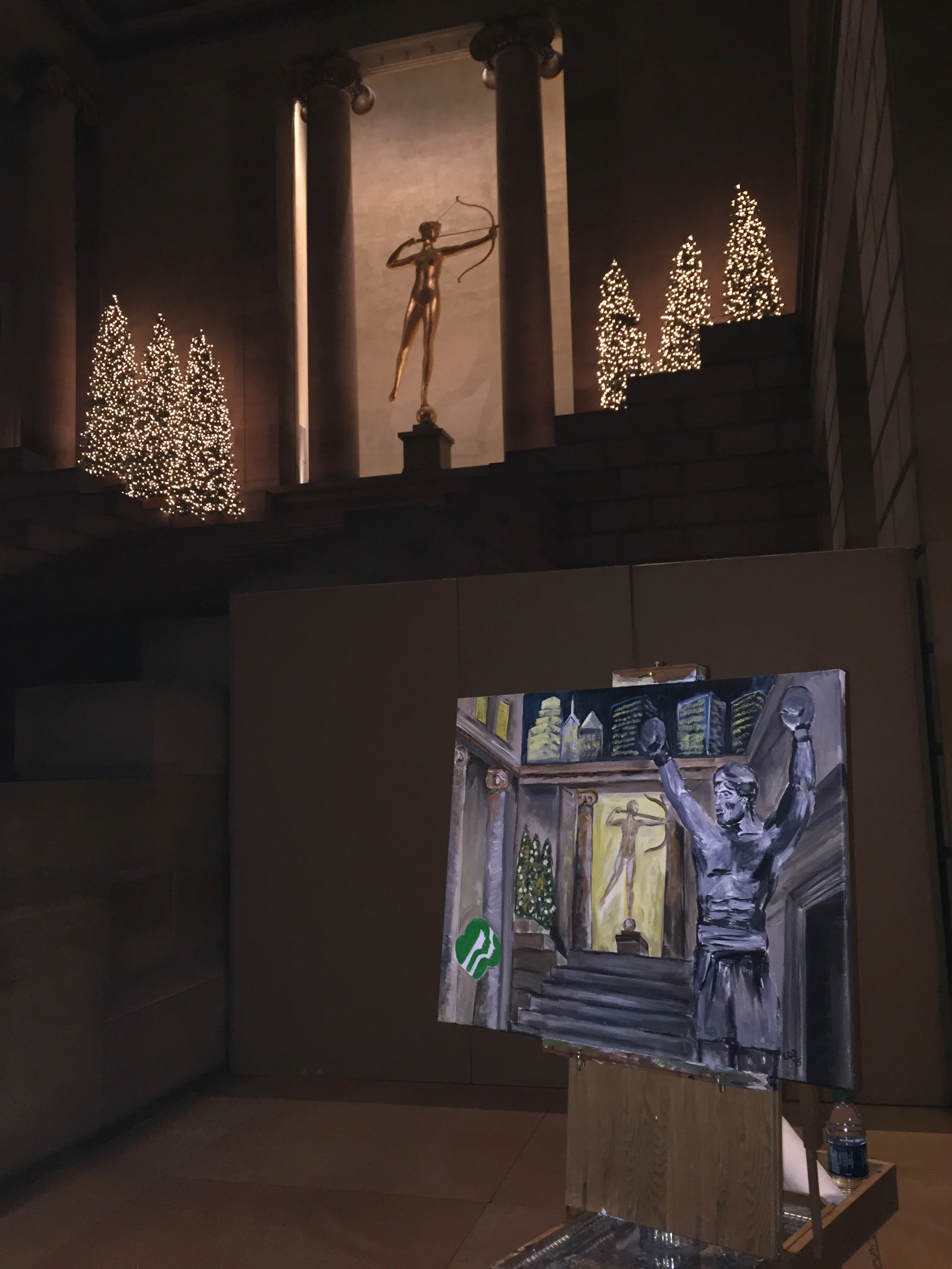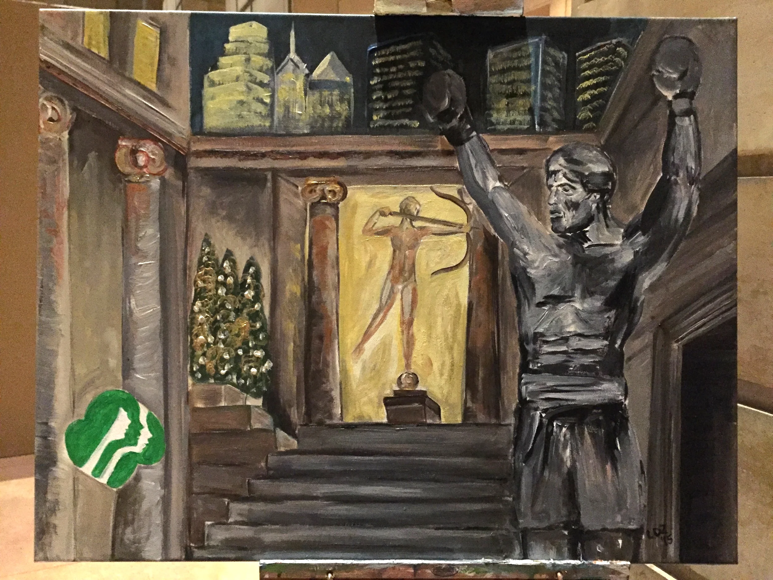 The last week has been a real whirlwind. This past Monday night I was fortunate enough to be able to paint at the Philadelphia Museum of Art after hours for a private dinner party. The dinner was held for the Girl Scouts of America, and I was asked to incorporate their logo, along with the city skyline and Rocky, into the painting. The Girl Scouts leaders, along with the Philadelphia CVB and the employees of the Art Museum, were such a lovely group of people! It was surreal to paint in one of my favorite places, especially during the holidays!
