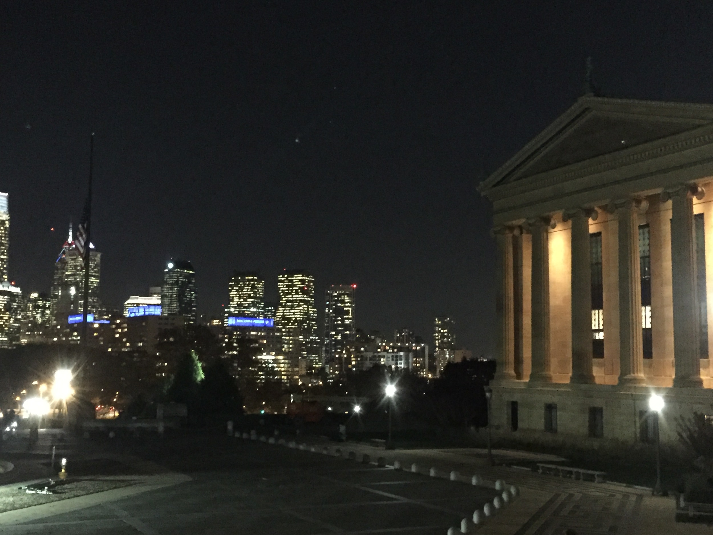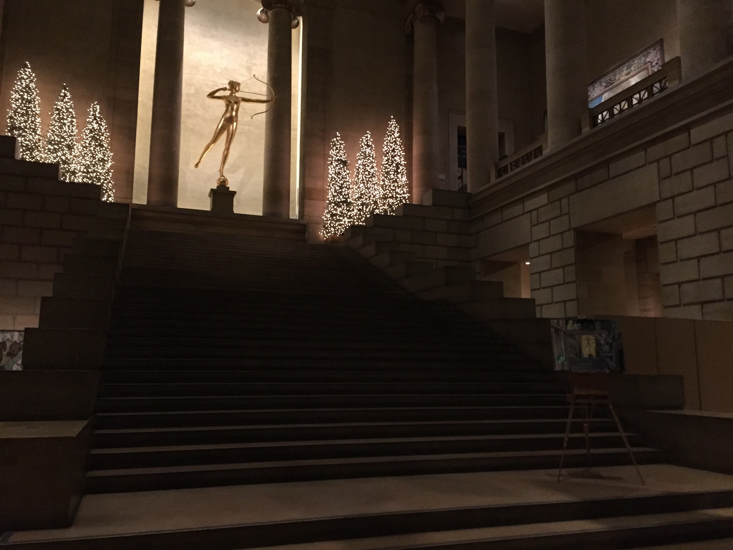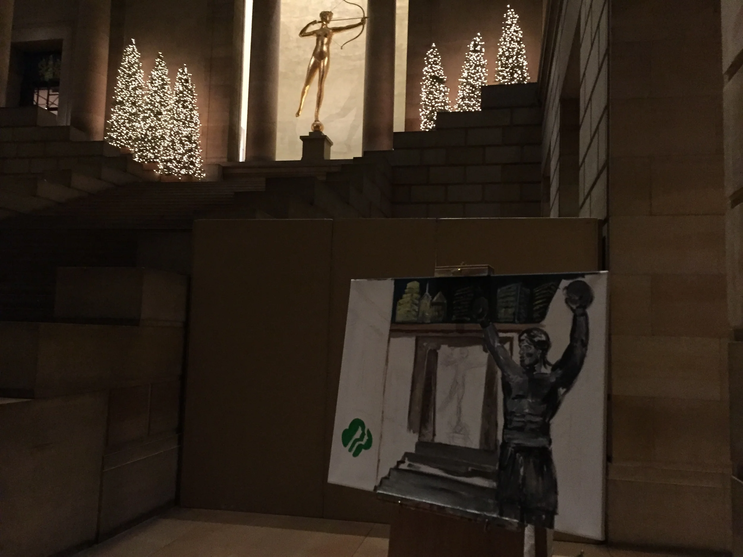 The last week has been a real whirlwind. This past Monday night I was fortunate enough to be able to paint at the Philadelphia Museum of Art after hours for a private dinner party. The dinner was held for the Girl Scouts of America, and I was asked to incorporate their logo, along with the city skyline and Rocky, into the painting. The Girl Scouts leaders, along with the Philadelphia CVB and the employees of the Art Museum, were such a lovely group of people! It was surreal to paint in one of my favorite places, especially during the holidays!